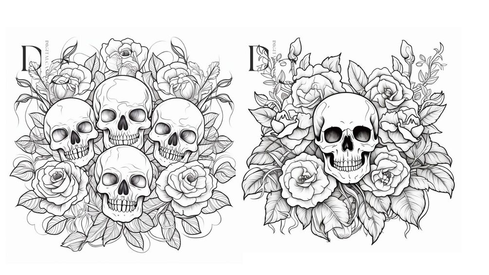 Embrace your creative spirit as you embark on a journey that fuses the edgy allure of skulls with the delicate allure of roses. Within these pages, you'll find a harmonious dance between intricate linework and graceful floral forms, ready to be transformed by your personal artistic touch.